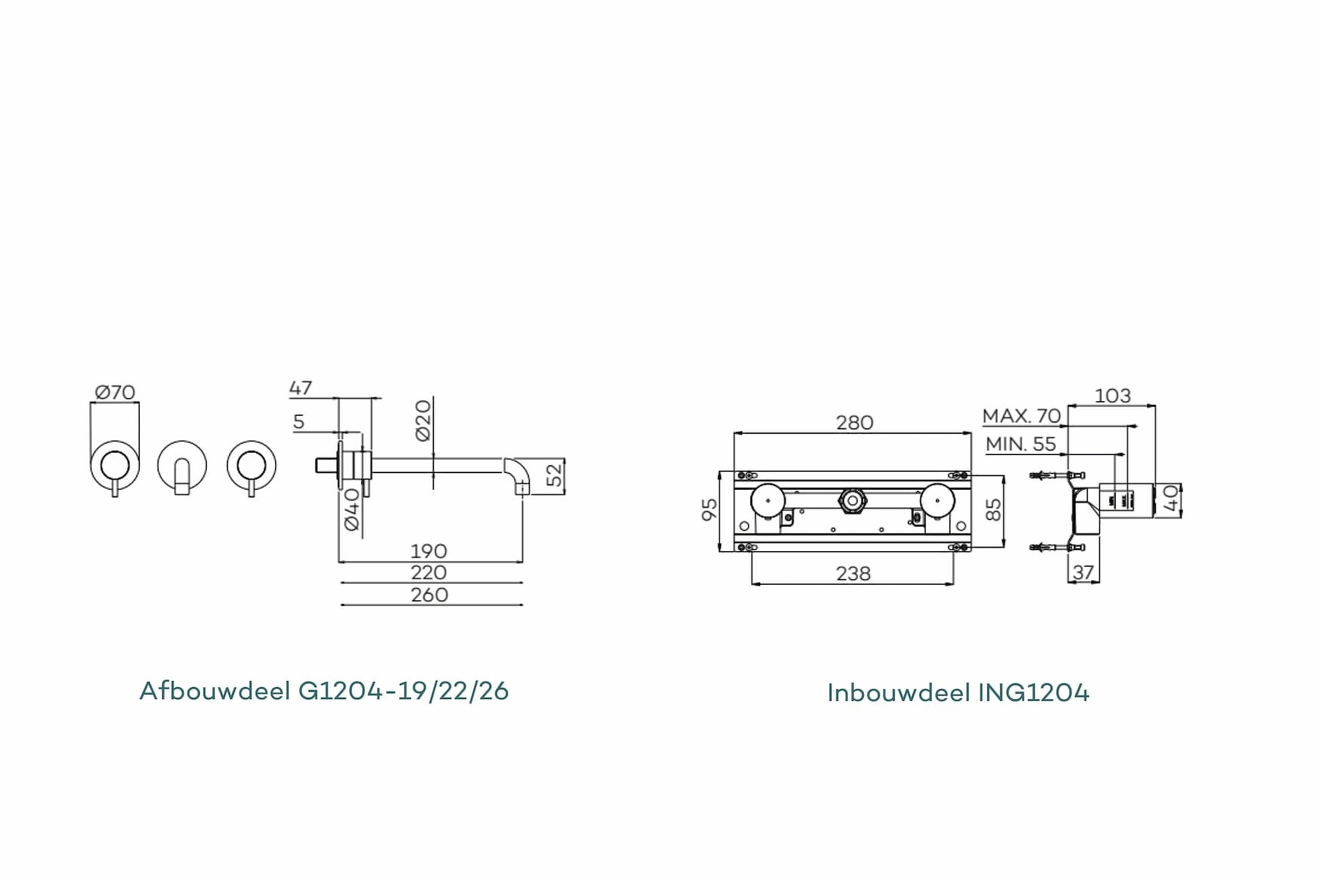 Deze 2-greeps inbouw wastafelmengkraan heeft een tijdloos design en laat zich perfect combineren met iedere badkamerstijl. Naast een uitloop van 19 cm. lengte is de kraan ook leverbaar met een uitloop van 22 of 26 cm. zodat voor iedere wastafeldiepte de juiste afstemming gevonden wordt.