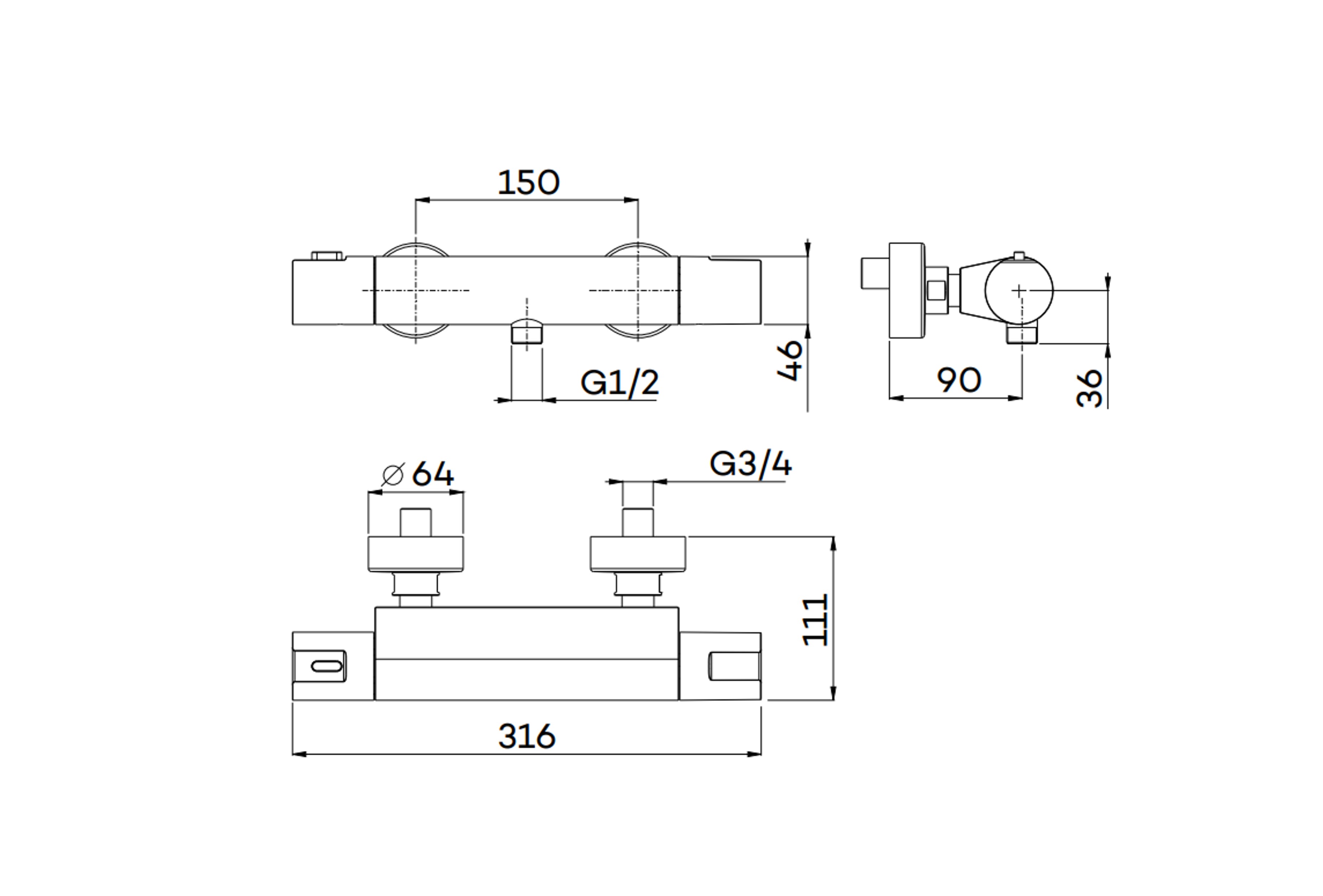 De bediening van de vulcombinatie en de handdouche gaat eenvoudig door middel van de twee mengkranen.
